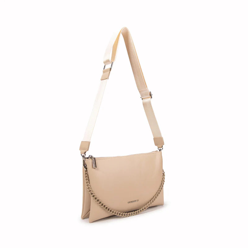 Pochette doppia in ecopelle liscia, con due tasche interne di cui una con zip, logo VIVIENNE D finitura argentata