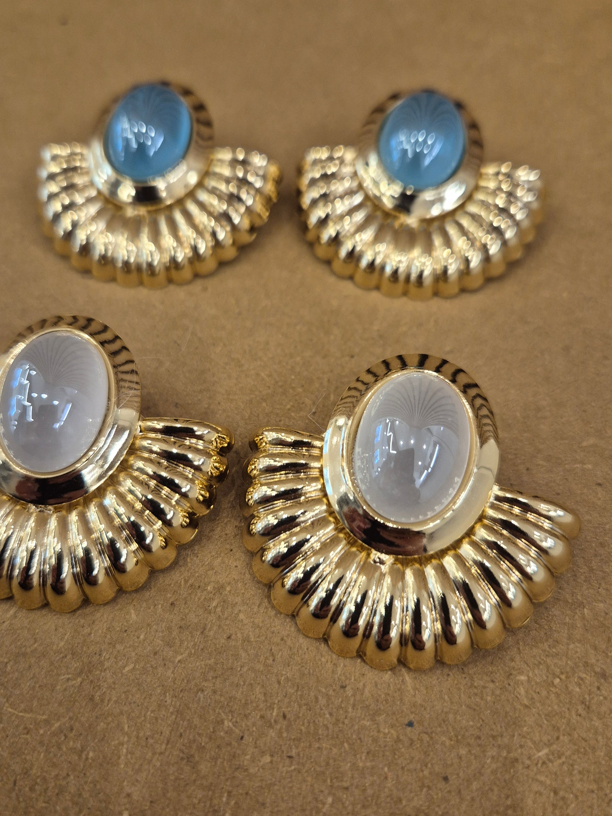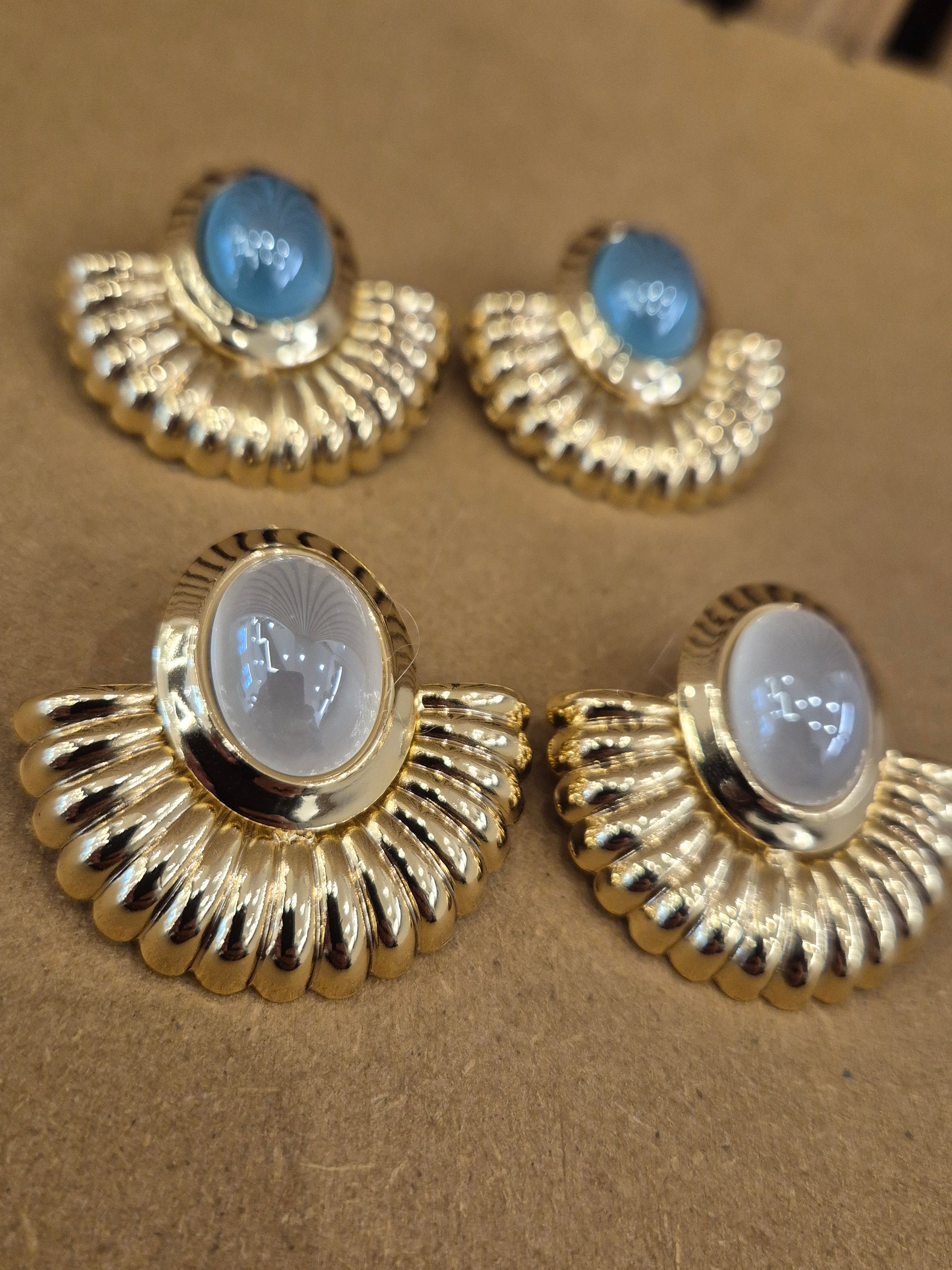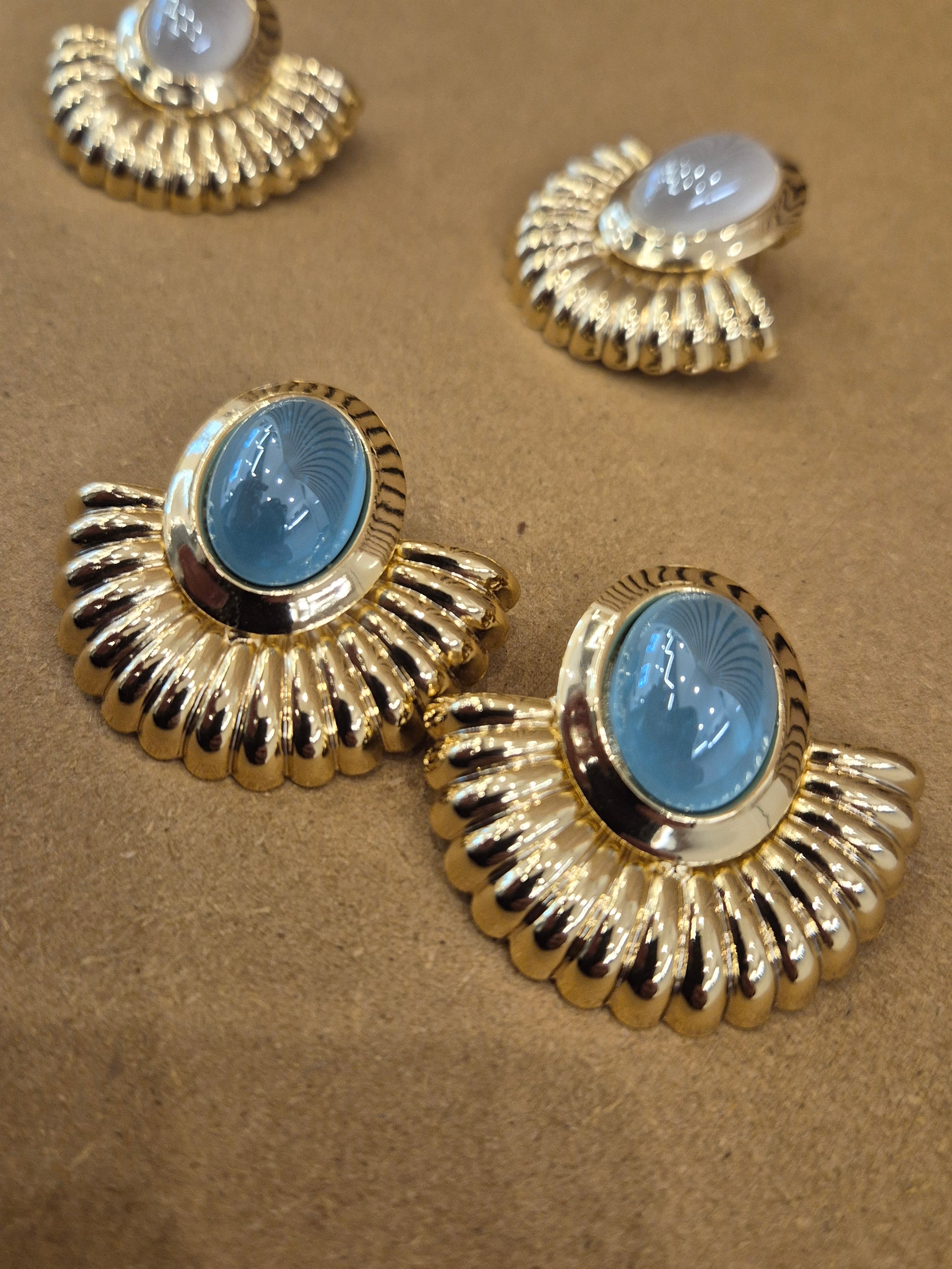 Realizzati a mano con cura artigianale, gli orecchini Alba uniscono la raffinatezza del design dorato alla delicatezza delle pietre pastello.
